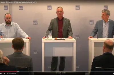 Am 9. Februar 2023 informierte die BGE in der jüngsten Ausgabe ihrer Veranstaltungsreihe „Betrifft: Asse“ über die wesentlichen Projektfortschritte im Jahr 2022 und gab einen Ausblick auf die anstehenden Aufgaben in diesem Jahr. Als Referenten nahmen unter anderem Dr. Thomas Lautsch, technischer Geschäftsführer der BGE, sowie Jens Köhler, Projektleiter Asse, an der Hybridveranstaltung teil und beantworteten die Fragen aus dem Publikum.