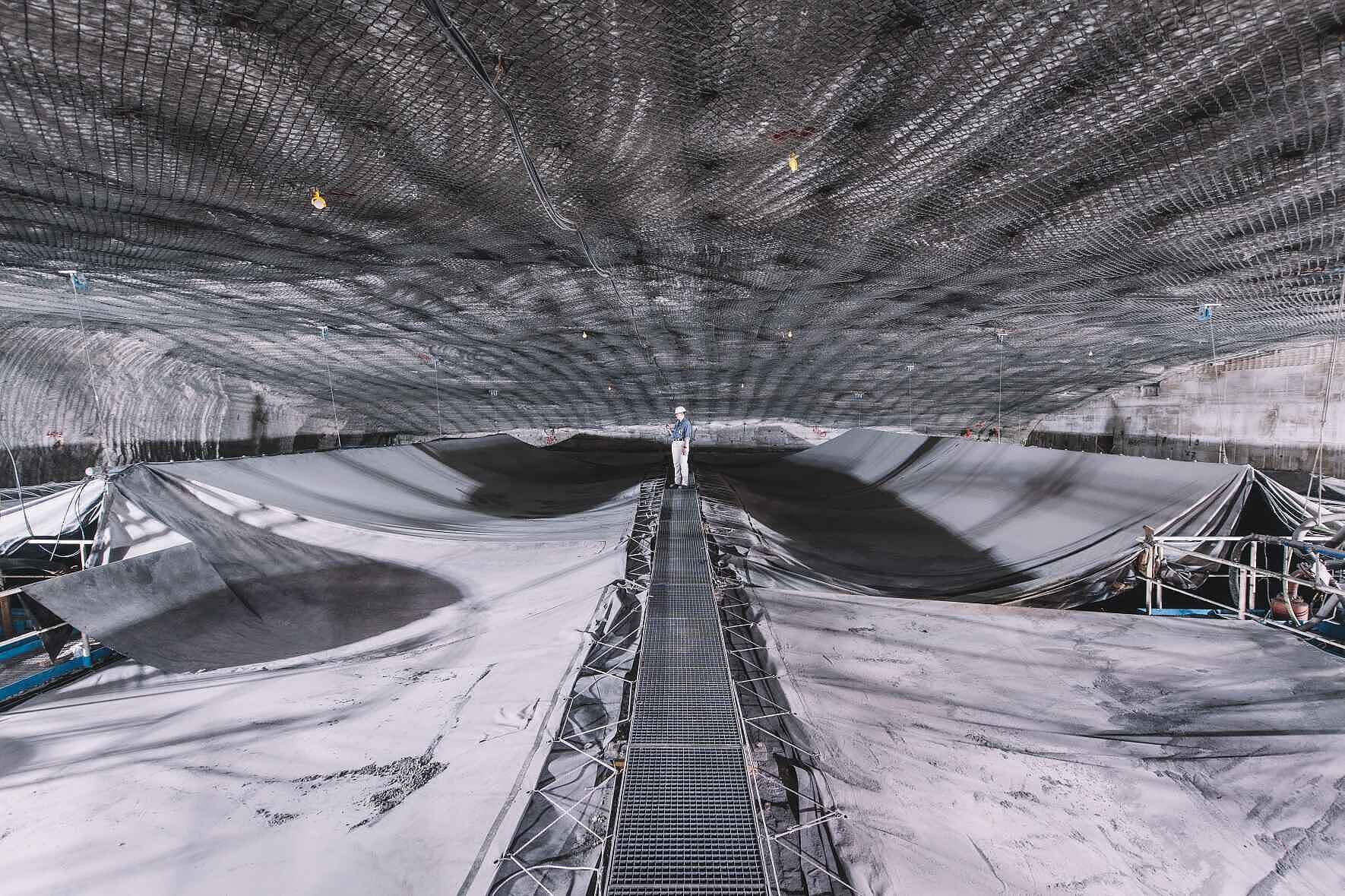 Bei der radioaktiven Lösung ist das anders. Die muss nicht nur in sicher verschlossenen Behältern gelagert werden, sondern immer auch in Strahlenschutzbereichen. Stärker kontaminierte Lösung wird erst in diesen sichereren und klar abgetrennten Bereichen gesammelt und dann zur Landessammelstelle Niedersachsen gebracht. Weniger radioaktiv kontaminierte Lösung darf zur Baustoffherstellung unter Tage verwendet werden. Hierzu wird in 800 Meter Tiefe – im Grubentiefsten – Sorelbeton hergestellt. Das ist ein spezieller Salzbeton aus Magnesiumoxid, Magnesiumchloridlösung und Steinsalz. Der wird an vielen verschiedenen Stellen im Bergwerk verwendet, um nicht mehr benötigte Hohlräume zu verschließen und es so zu stabilisieren. Unterhalb der Einlagerungskammern in 750 Metern Tiefe jedoch können alte Abbauten mit Sorelbeton verfüllt werden, der mit radioaktiver Lösung versetzt wird. Dafür wird, streng nach den Strahlenschutzregeln, vor Ort ein temporärer Strahlenschutzbereich eingerichtet, Schutzkleidung angelegt, um eine mögliche Kontaminationsverschleppung zu vermeiden.