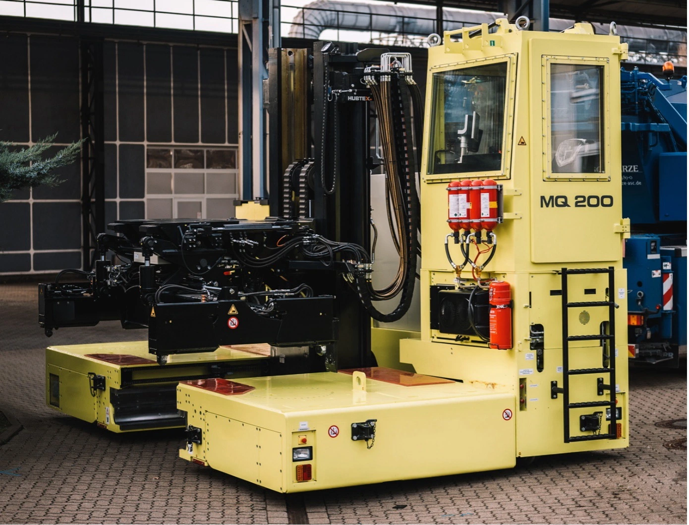Das Seitenstapelfahrzeug für das Endlager Konrad ist gefertigt und hat bei der beauftragen Firma die ersten Testfahrten erfolgreich absolviert. Mit dem Seitenstapelfahrzeug können später Konrad-Behälter mit radioaktiven Abfällen in der Pufferhalle bewegt und gestapelt werden.